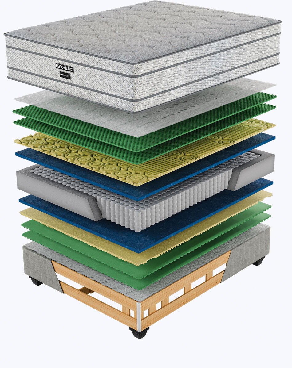 Restonic beds & mattresses are packed with cutting-edge technologies designed to provide the ultimate sleeping experience. Our mattress features supports your ideal body contouring including targeted back & neck support.