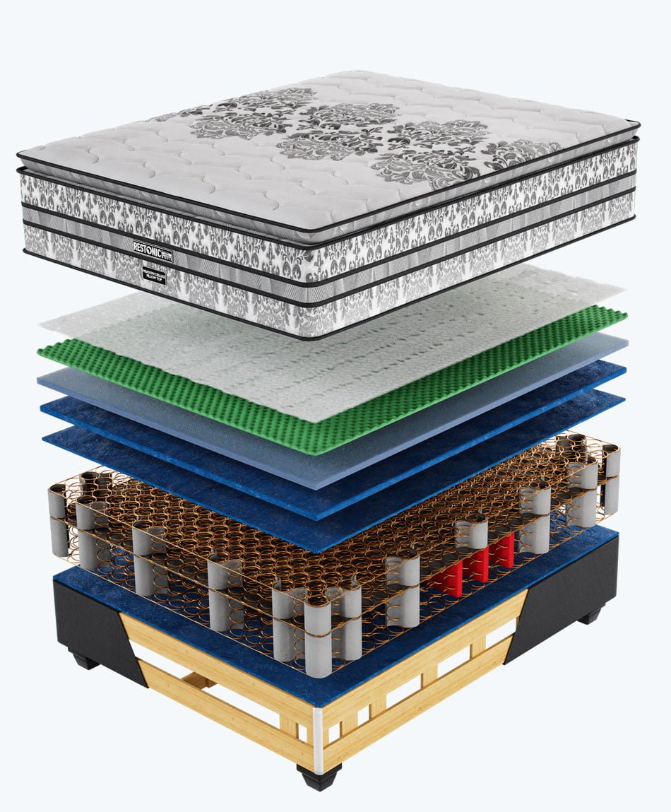 Restonic beds & mattresses are packed with cutting-edge technologies designed to provide the ultimate sleeping experience. Our mattress features supports your ideal body contouring including targeted back & neck support.