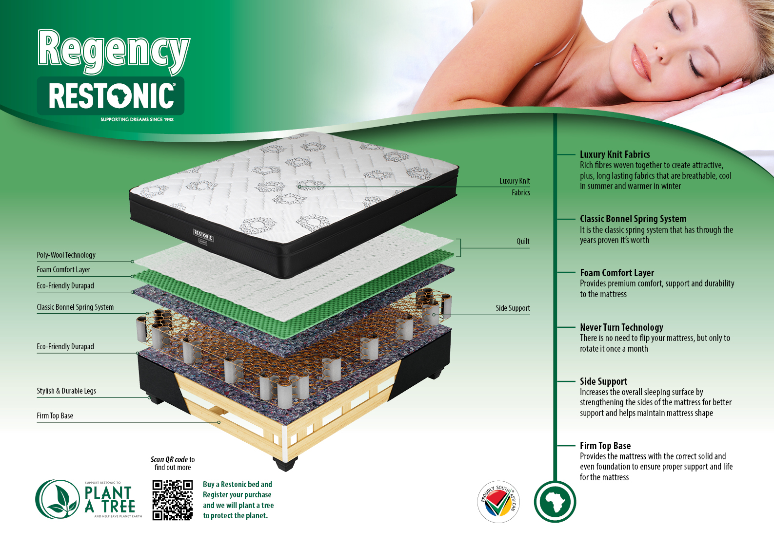 Restonic beds & mattresses are packed with cutting-edge technologies designed to provide the ultimate sleeping experience. Our mattress features supports your ideal body contouring including targeted back & neck support.
