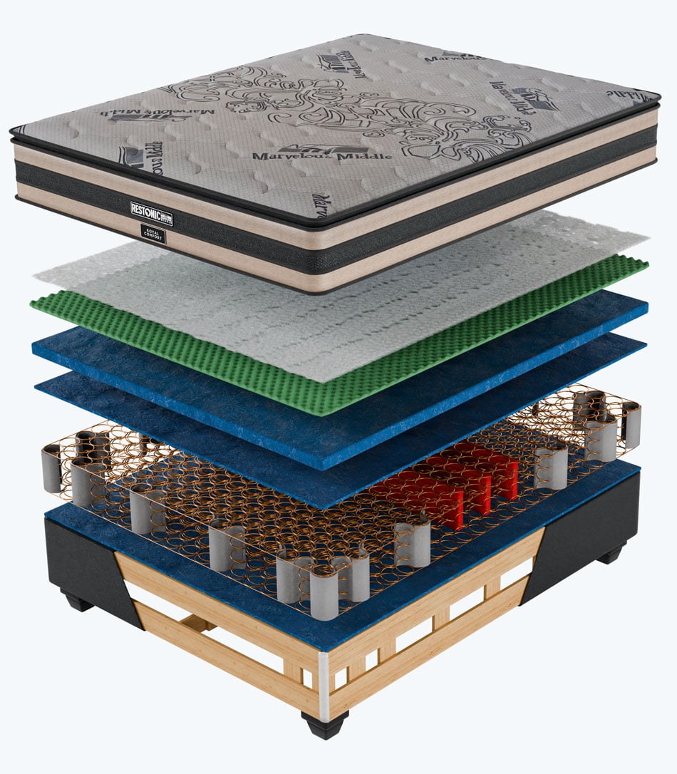 Our patented Marvelous Middle system provides extra support to the centre third of the mattress where it is needed most.