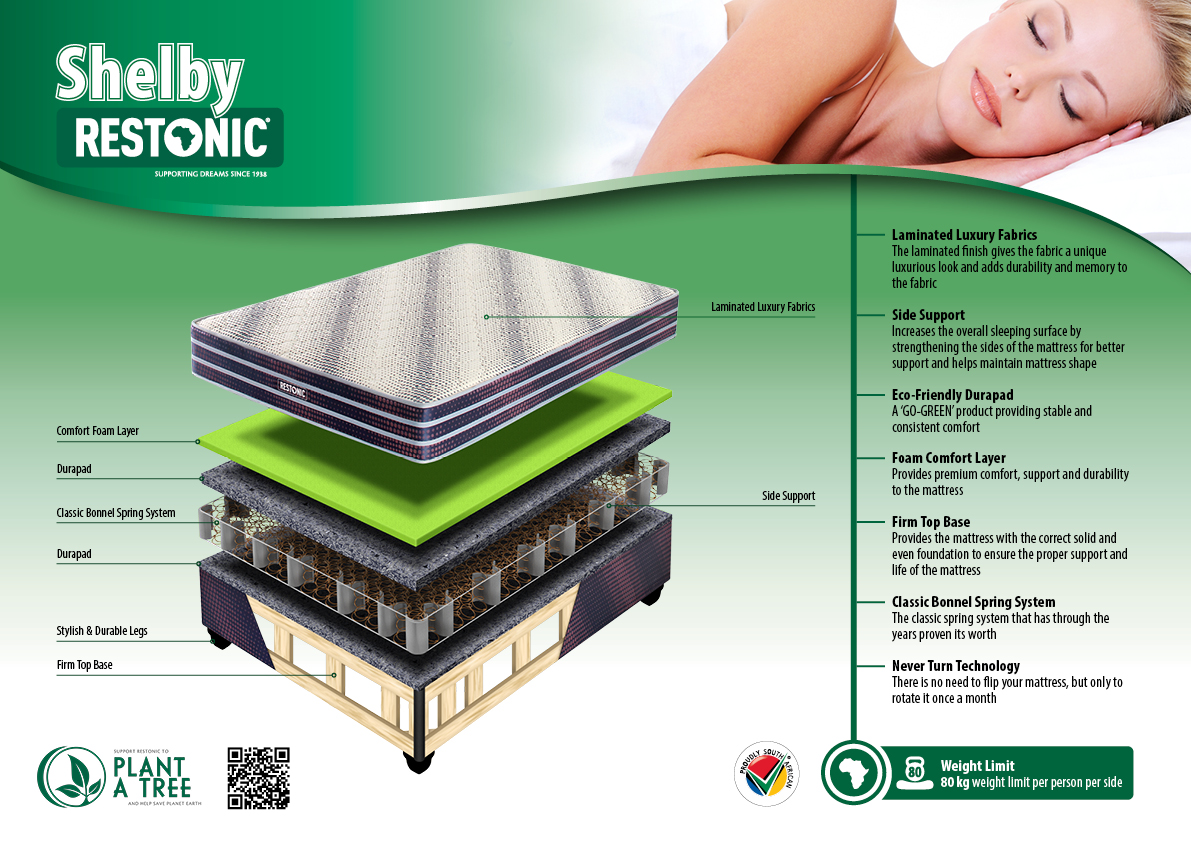 Restonic beds & mattresses are packed with cutting-edge technologies designed to provide the ultimate sleeping experience. Our mattress features supports your ideal body contouring including targeted back & neck support.