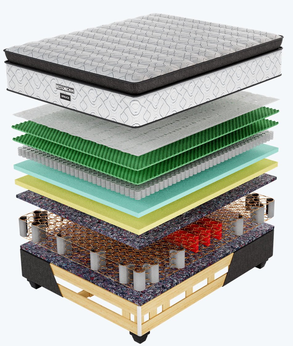 Restonic beds & mattresses are packed with cutting-edge technologies designed to provide the ultimate sleeping experience. Our mattress features supports your ideal body contouring including targeted back & neck support.